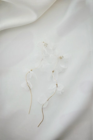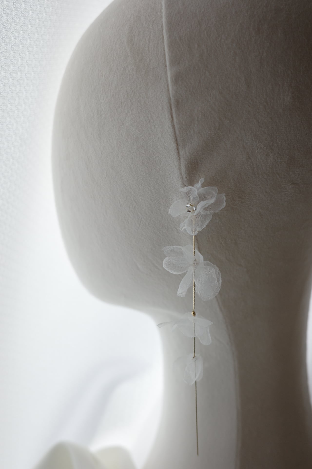 この《mist drop》は、髪飾り《mist veil》と同素材で仕立てており、