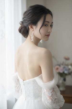 ウェディングドレスにも日常の装いにも溶け込むデザイン。